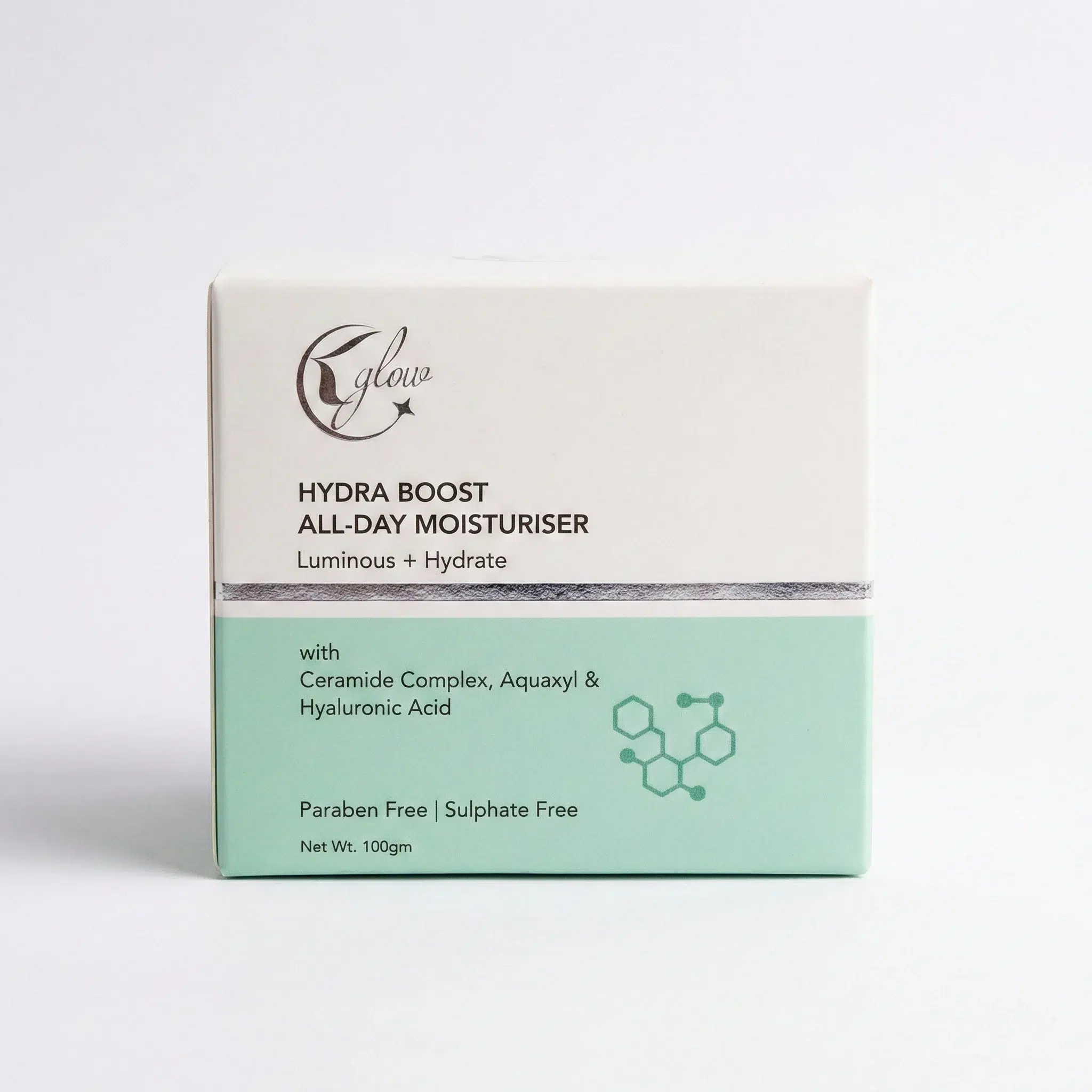 Kglow Hydra Boost is a lightweight, science-based moisturiser created to deliver long-lasting hydration while strengthening your skin’s natural barrier.